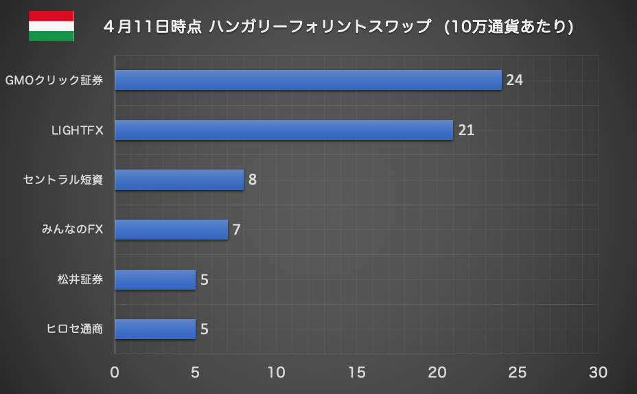ハンガリーフォリント/円のスワップは、会社によってもらえる金額にかなりの差があるため、付与額の小さな会社で始めることは、単純に損な話です。。