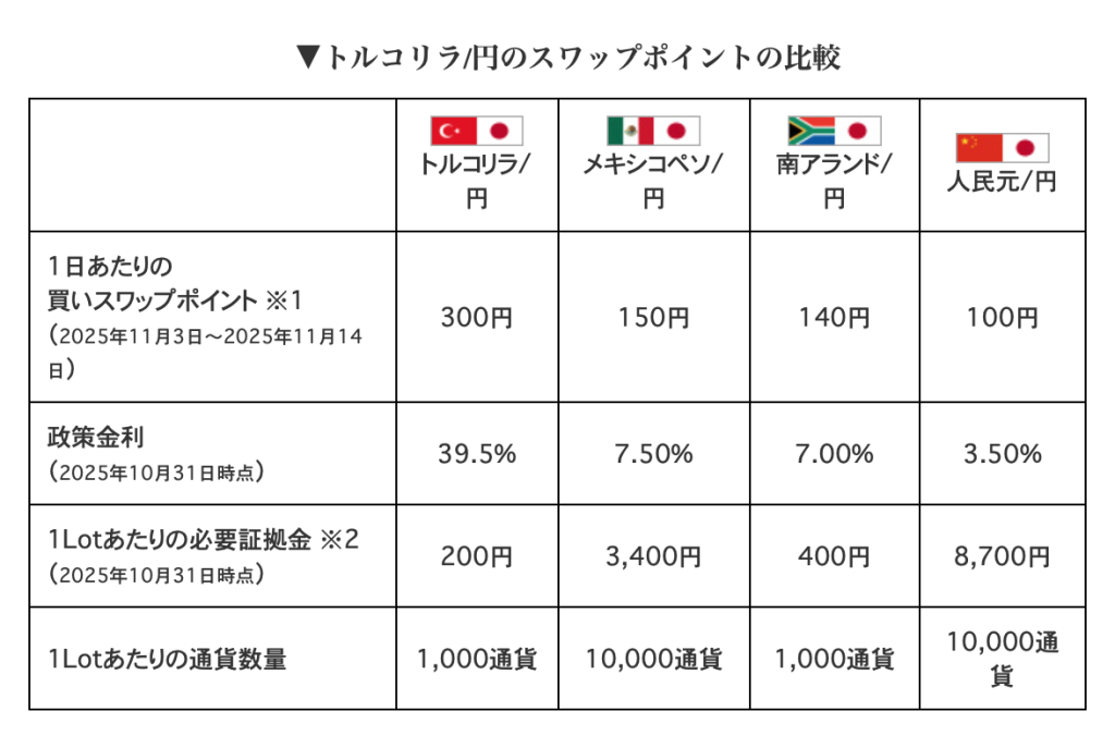 | トルコリラスワップ(10万通貨) | 最低取引単位 |